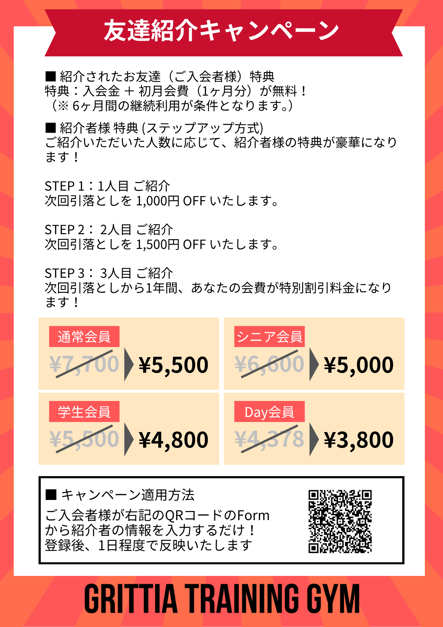 ぜひこの機会に、ご家族やお友達をGRITTIAのトレーニング仲間としてお誘いください!